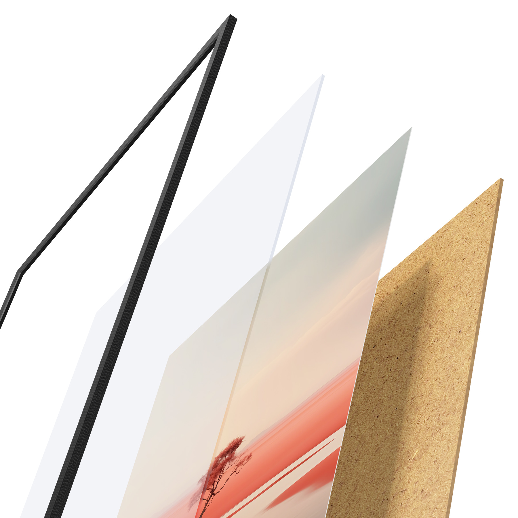 Il poster è composto da cornice, plexiglass, immagine stampata e supporto in truciolato. Il poster può essere immediatamente appeso alla parete grazie ai supporti sul retro.