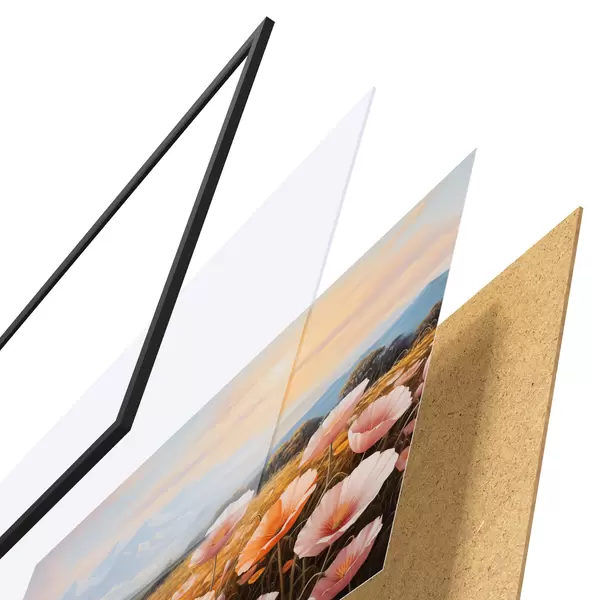 Il poster è composto da cornice, plexiglass, immagine stampata e supporto in truciolato. Il poster può essere immediatamente appeso alla parete grazie ai supporti sul retro.