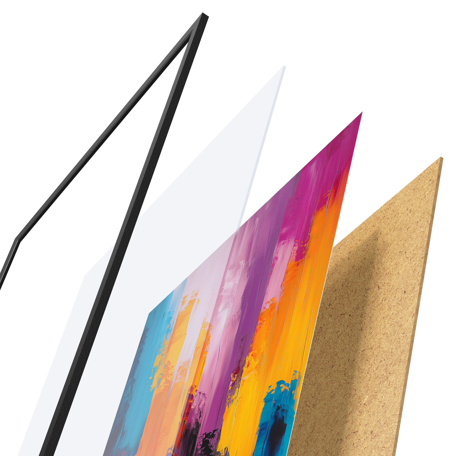 Il poster è composto da cornice, plexiglass, immagine stampata e supporto in truciolato. Il poster può essere immediatamente appeso alla parete grazie ai supporti sul retro.