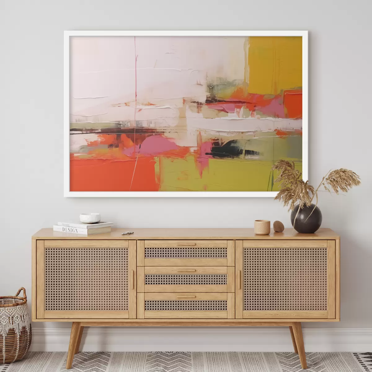 Poster Tratti di pittura astratta, colore rosso, giallo, verde, arancione Nr f40747