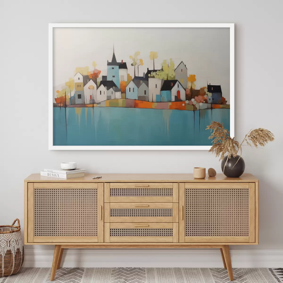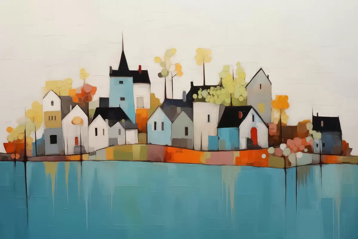 Poster Città astratta e case, colore blu, giallo, rosso Nr f40751