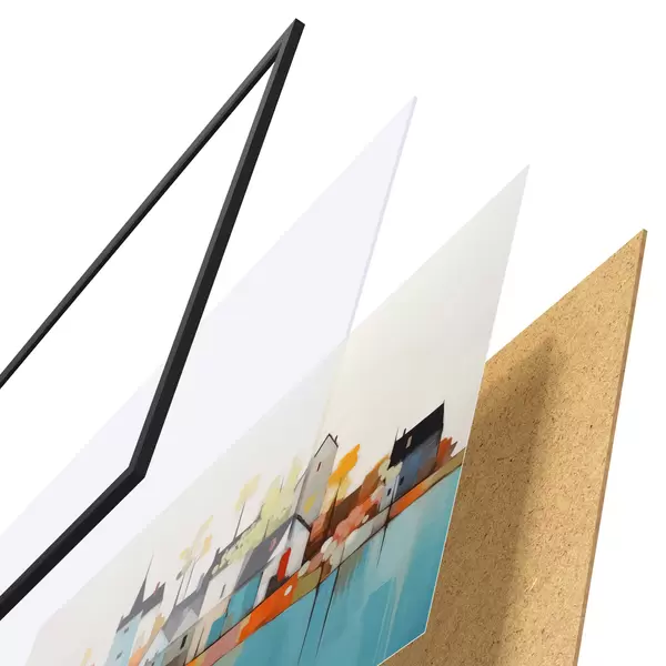 Il poster è composto da cornice, plexiglass, immagine stampata e supporto in truciolato. Il poster può essere immediatamente appeso alla parete grazie ai supporti sul retro.