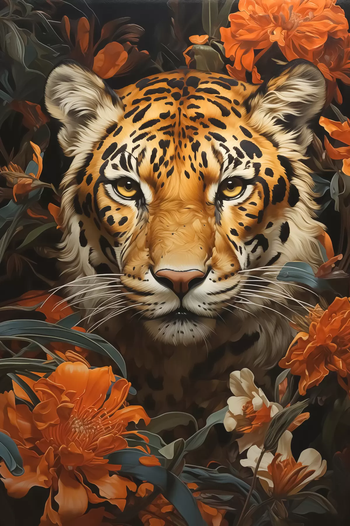 Poster Ritratto di una tigre circondata da fiori tropicali f40757