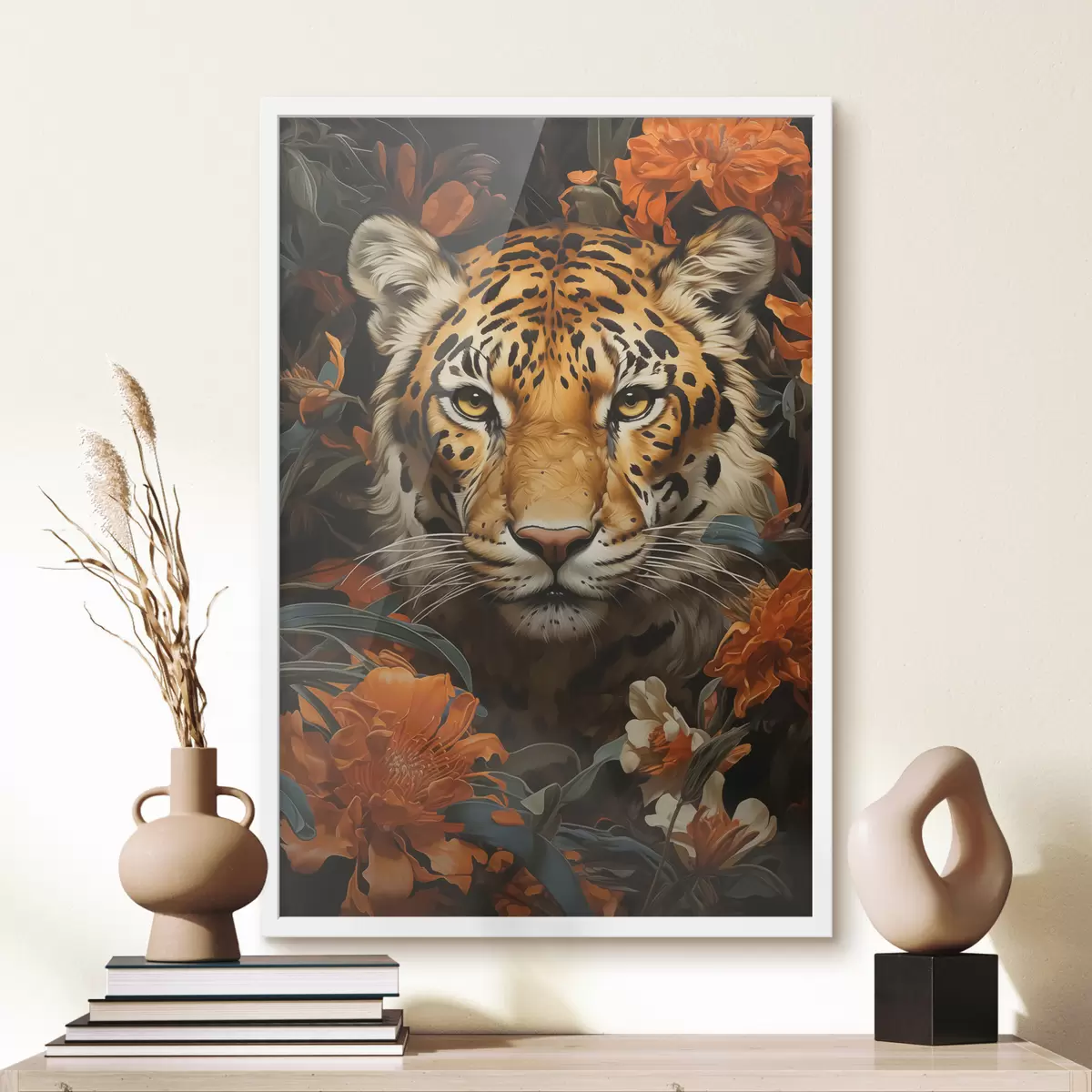 Poster Ritratto di una tigre circondata da fiori tropicali Nr f40757