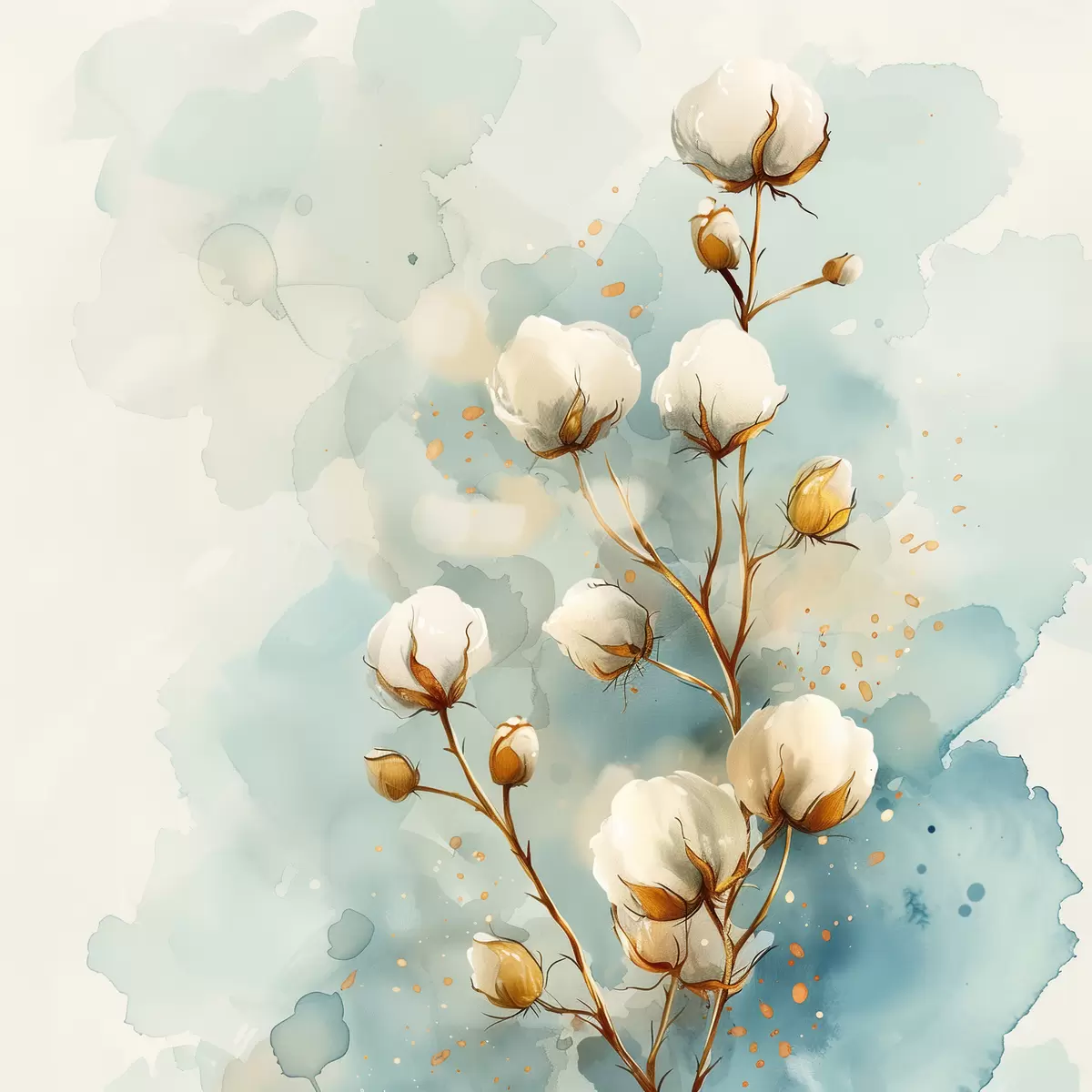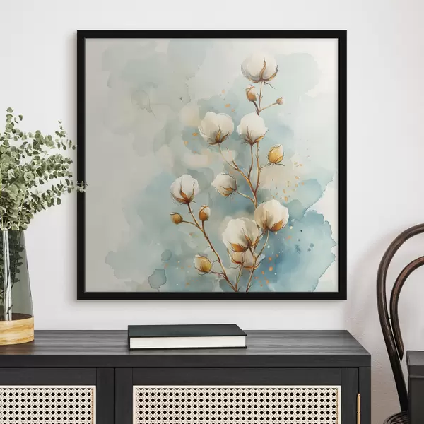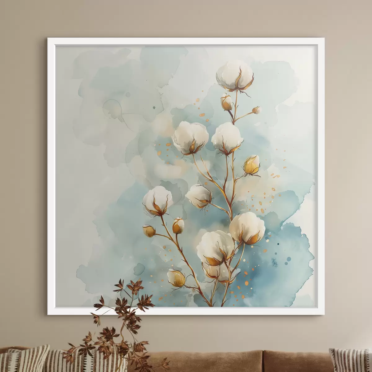 Poster Ramo di cotone su sfondo acquerellato Nr f40780