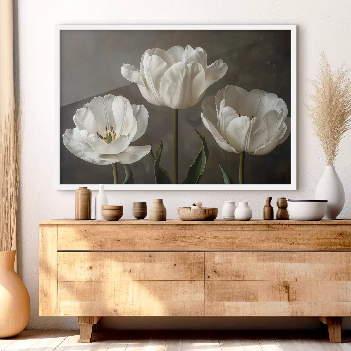 Poster Grandi fiori di tulipano, tulipani bianchi Nr f40792