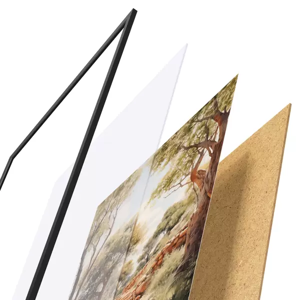Il poster è composto da cornice, plexiglass, immagine stampata e supporto in truciolato. Il poster può essere immediatamente appeso alla parete grazie ai supporti sul retro.