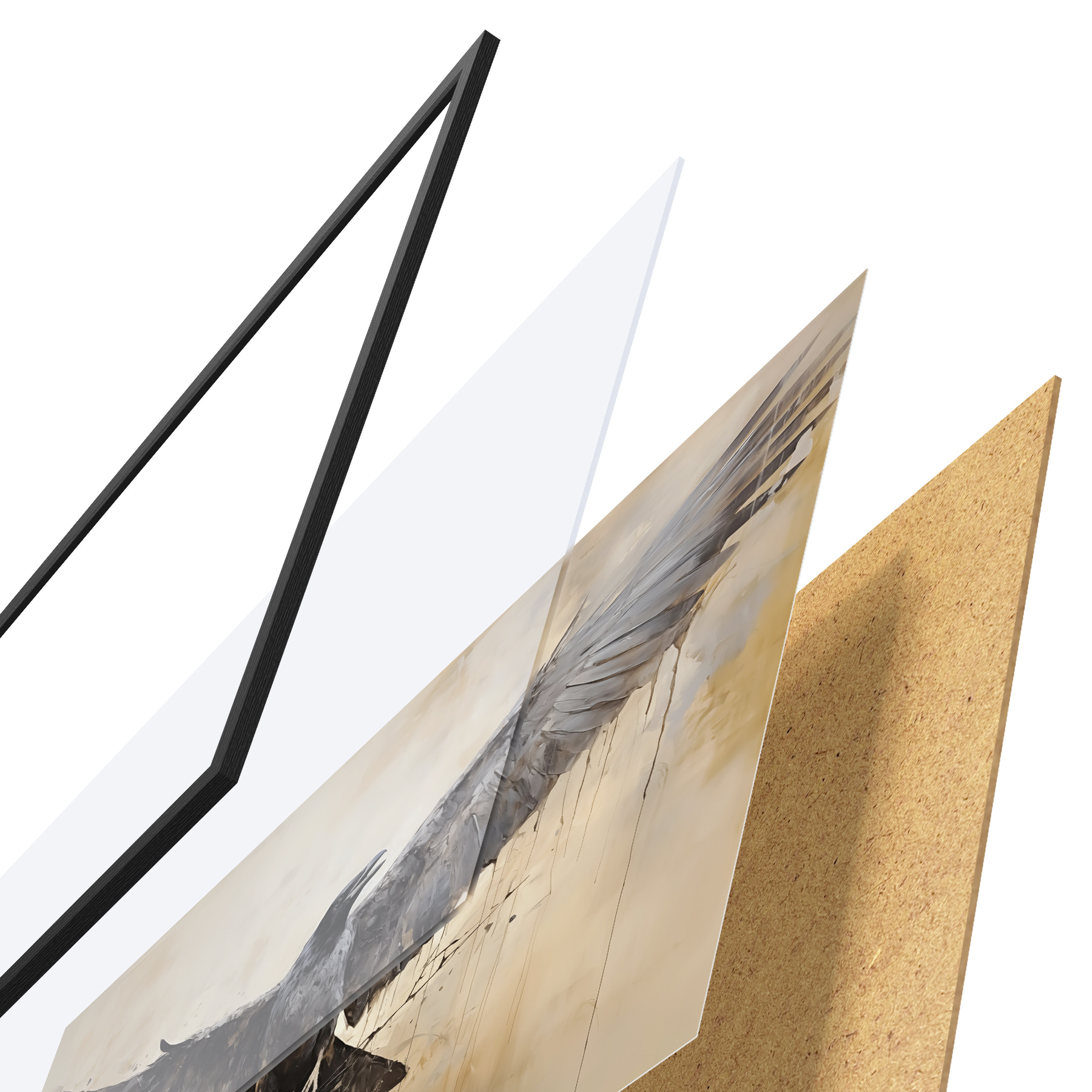 Il poster è composto da cornice, plexiglass, immagine stampata e supporto in truciolato. Il poster può essere immediatamente appeso alla parete grazie ai supporti sul retro.