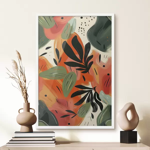 Poster Stampa astratta con fiori e foglie Nr f40812
