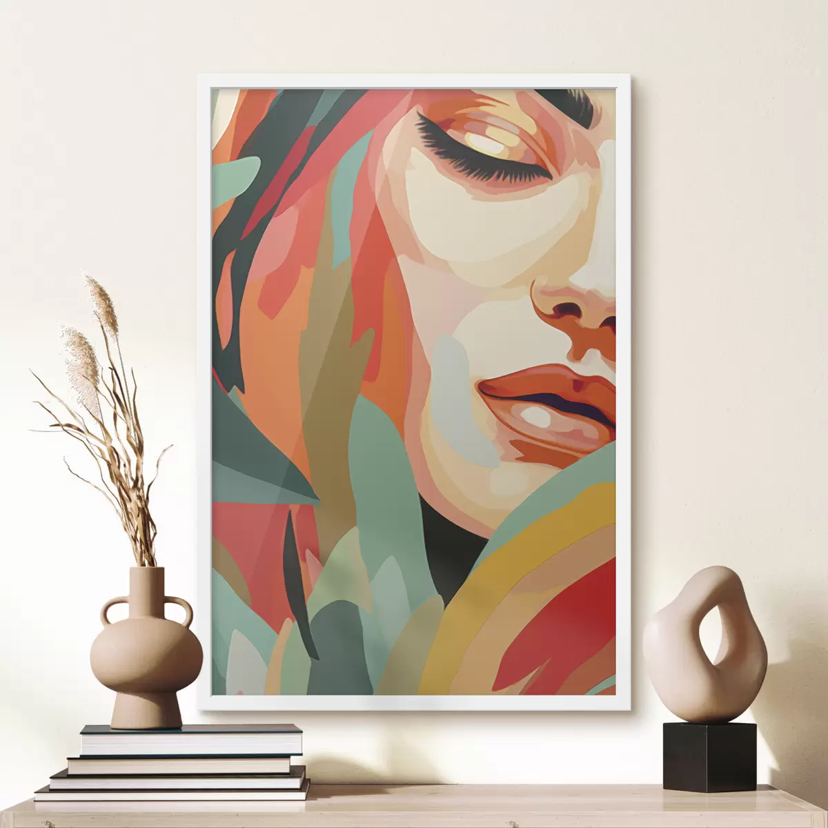 Poster Bel volto di donna, astrazione geometrica, floreale, disegno acrilico Nr f40815