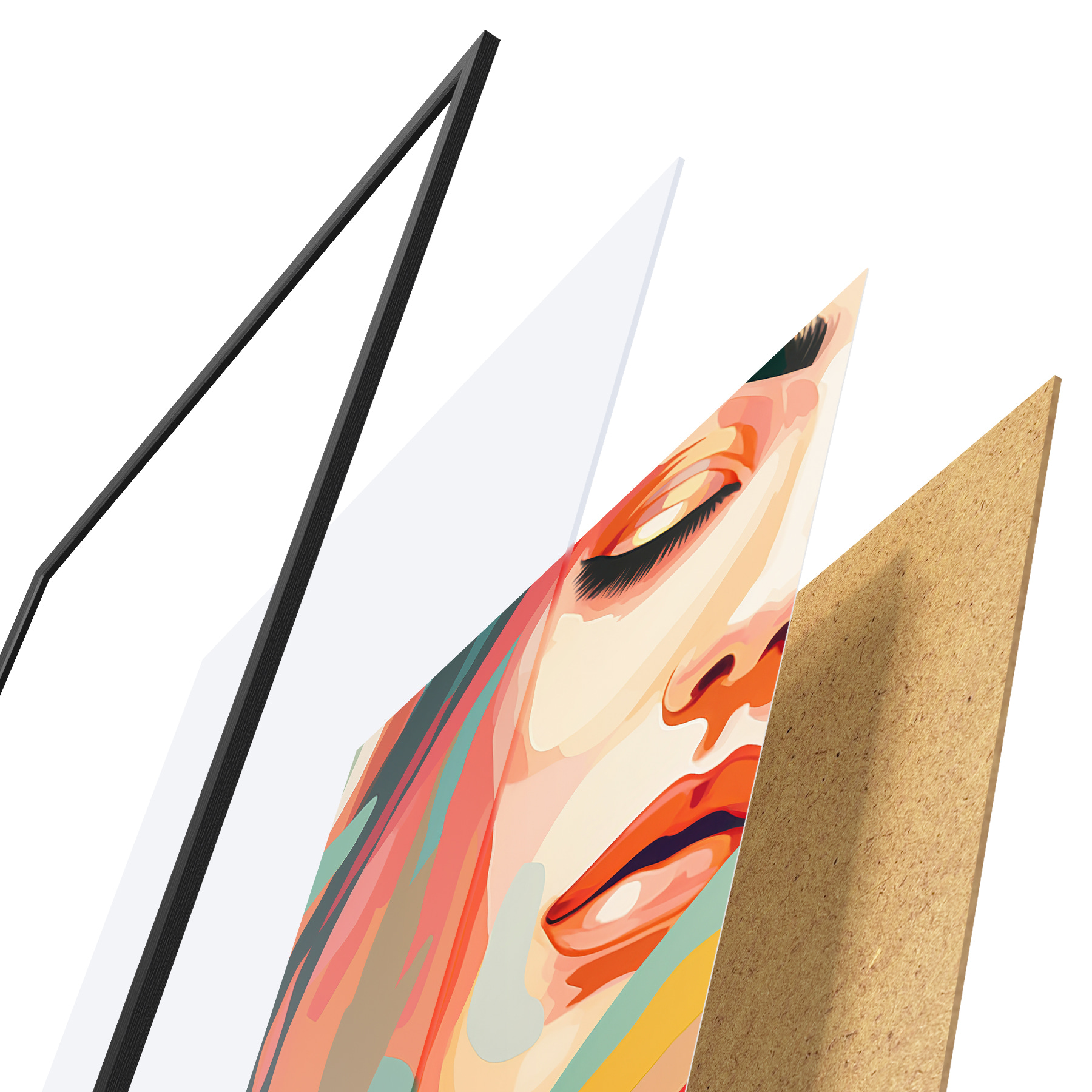Il poster è composto da cornice, plexiglass, immagine stampata e supporto in truciolato. Il poster può essere immediatamente appeso alla parete grazie ai supporti sul retro.