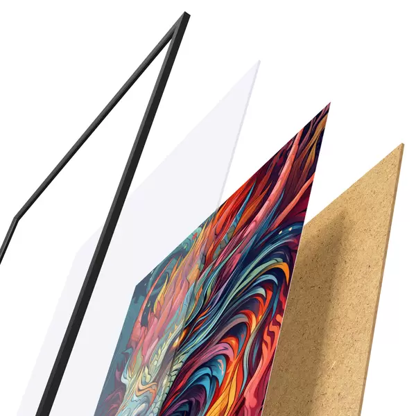 Il poster è composto da cornice, plexiglass, immagine stampata e supporto in truciolato. Il poster può essere immediatamente appeso alla parete grazie ai supporti sul retro.