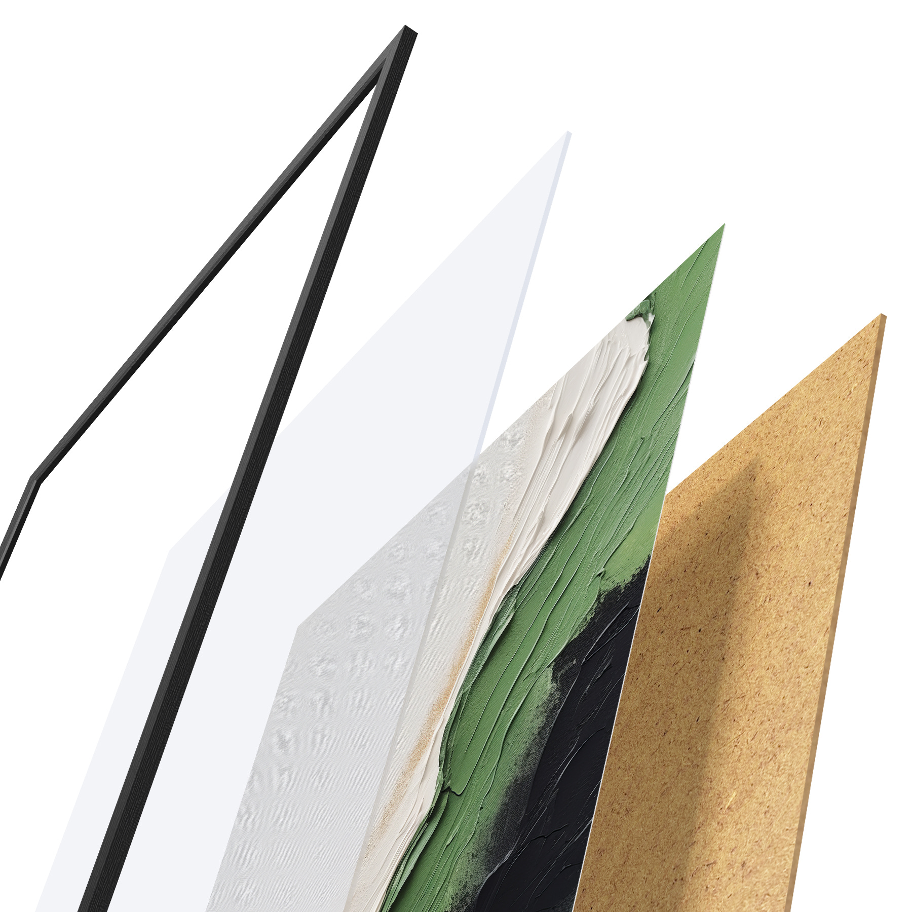 Il poster è composto da cornice, plexiglass, immagine stampata e supporto in truciolato. Il poster può essere immediatamente appeso alla parete grazie ai supporti sul retro.