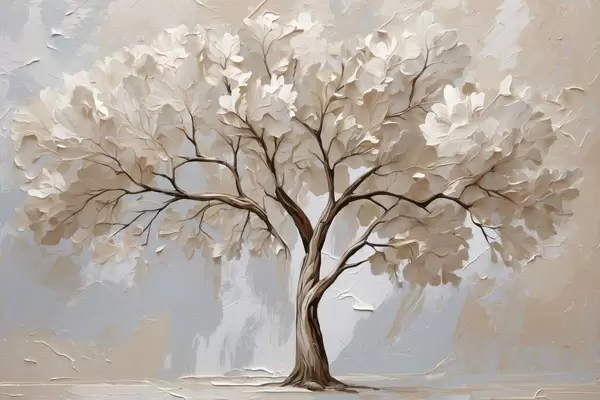 Poster Albero bianco su sfondo astratto ad olio Nr f40860