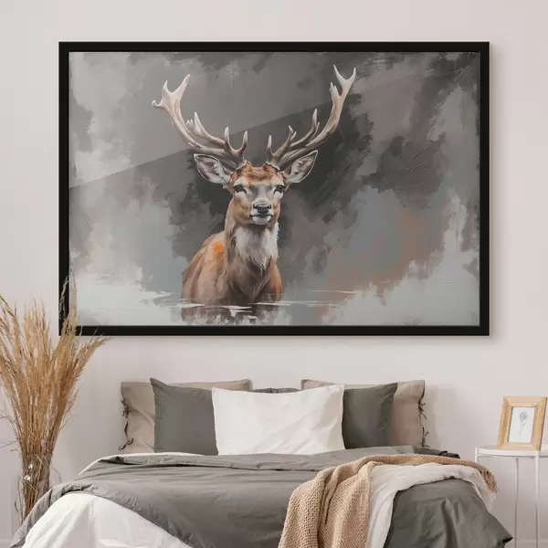 Poster Cervo su sfondo grigio-nero f40865