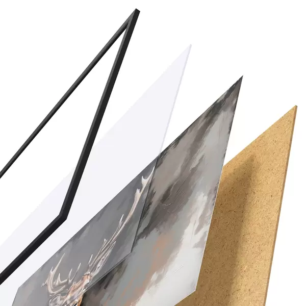 Il poster è composto da cornice, plexiglass, immagine stampata e supporto in truciolato. Il poster può essere immediatamente appeso alla parete grazie ai supporti sul retro.