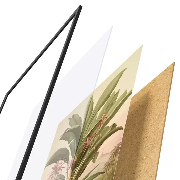 Il poster è composto da cornice, plexiglass, immagine stampata e supporto in truciolato. Il poster può essere immediatamente appeso alla parete grazie ai supporti sul retro.