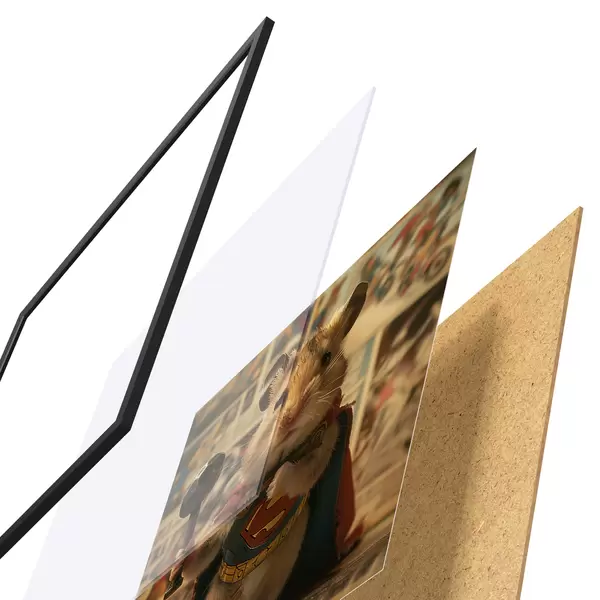 Il poster è composto da cornice, plexiglass, immagine stampata e supporto in truciolato. Il poster può essere immediatamente appeso alla parete grazie ai supporti sul retro.