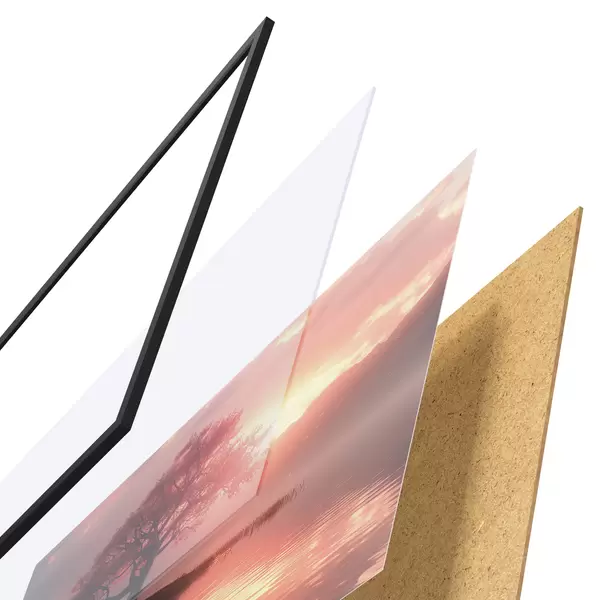 Il poster è composto da cornice, plexiglass, immagine stampata e supporto in truciolato. Il poster può essere immediatamente appeso alla parete grazie ai supporti sul retro.