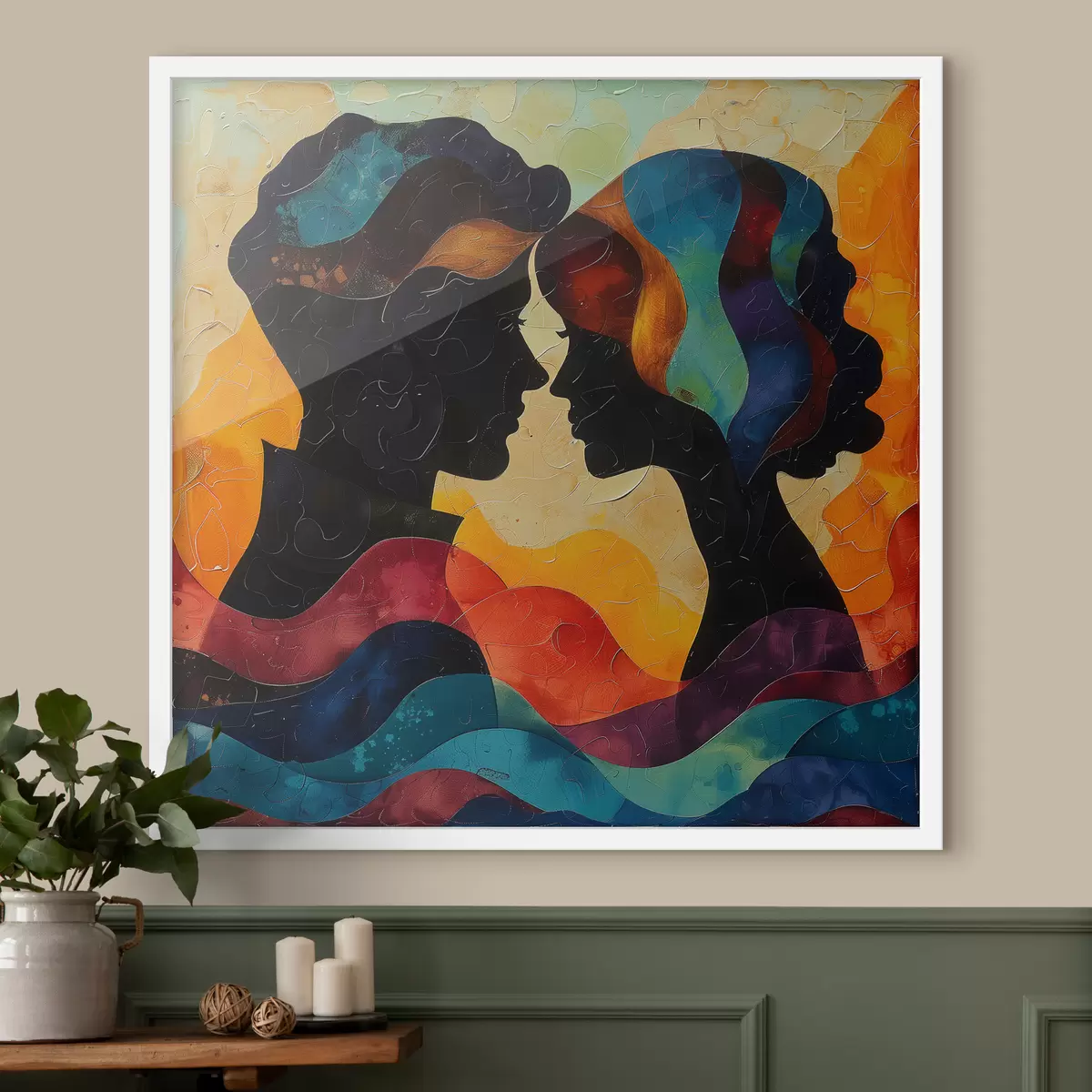 Poster Sagome acquerellate di una coppia di innamorati f40938