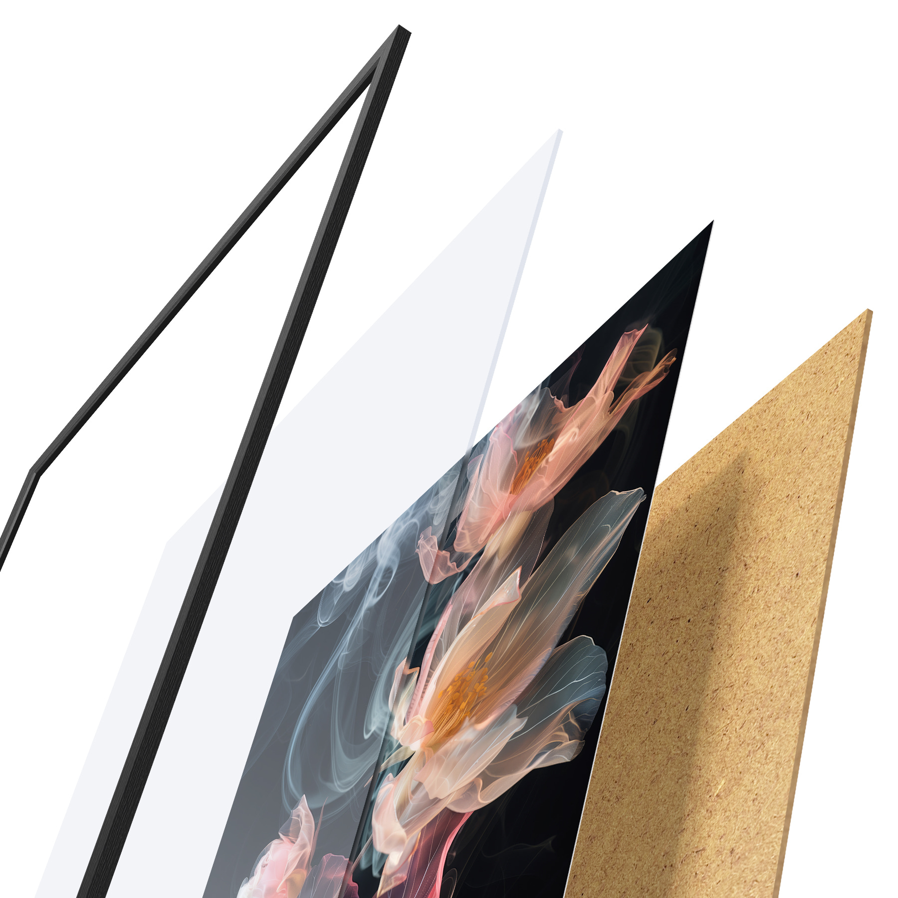 Il poster è composto da cornice, plexiglass, immagine stampata e supporto in truciolato. Il poster può essere immediatamente appeso alla parete grazie ai supporti sul retro.