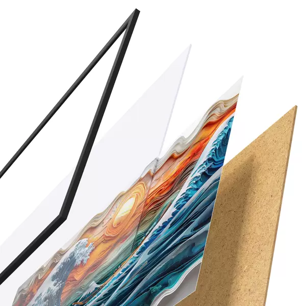 Il poster è composto da cornice, plexiglass, immagine stampata e supporto in truciolato. Il poster può essere immediatamente appeso alla parete grazie ai supporti sul retro.