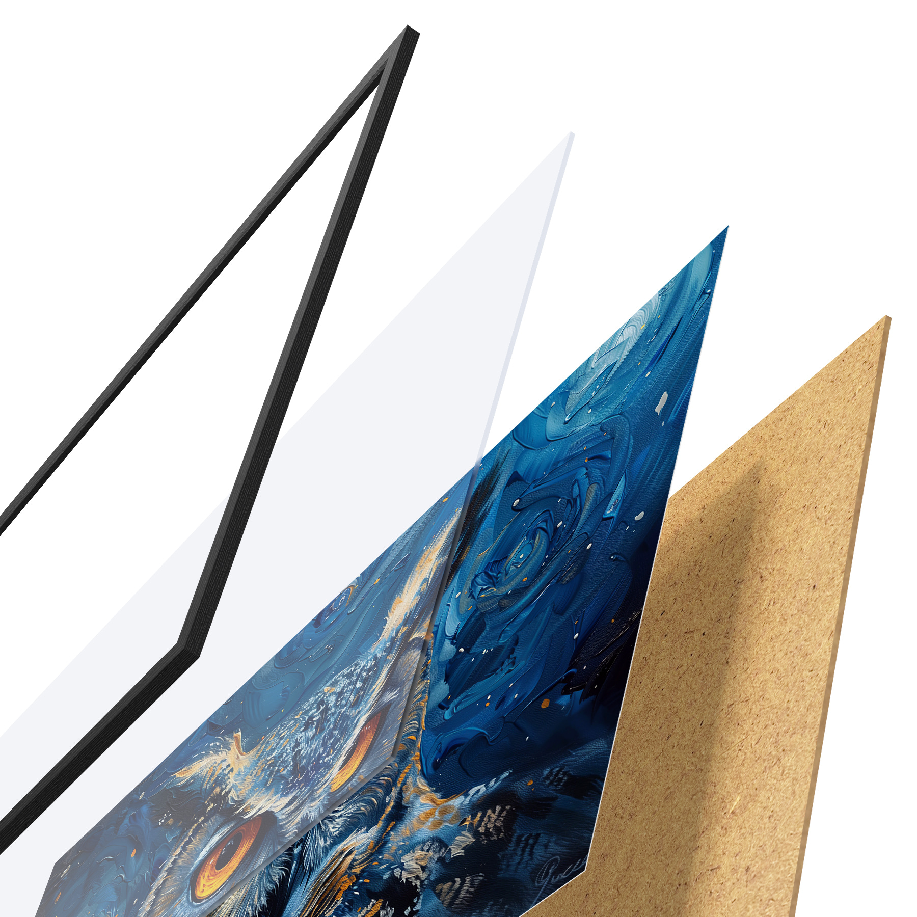 Il poster è composto da cornice, plexiglass, immagine stampata e supporto in truciolato. Il poster può essere immediatamente appeso alla parete grazie ai supporti sul retro.