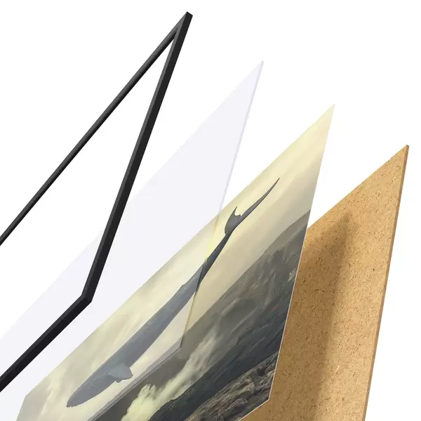 Il poster è composto da cornice, plexiglass, immagine stampata e supporto in truciolato. Il poster può essere immediatamente appeso alla parete grazie ai supporti sul retro.