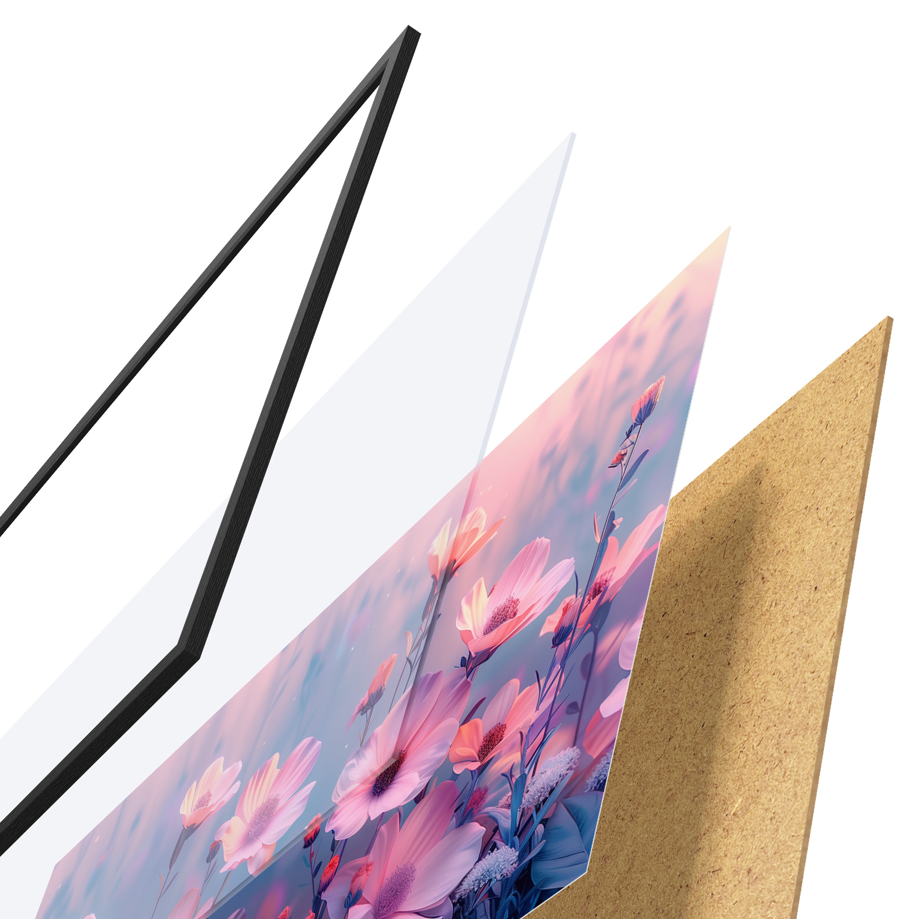 Il poster è composto da cornice, plexiglass, immagine stampata e supporto in truciolato. Il poster può essere immediatamente appeso alla parete grazie ai supporti sul retro.