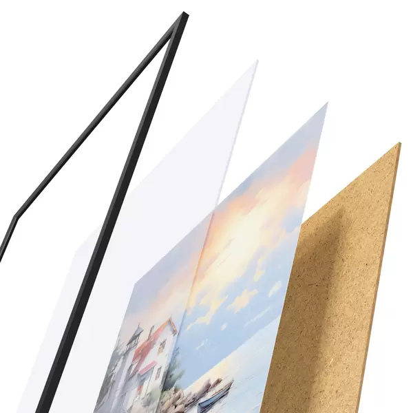 Il poster è composto da cornice, plexiglass, immagine stampata e supporto in truciolato. Il poster può essere immediatamente appeso alla parete grazie ai supporti sul retro.