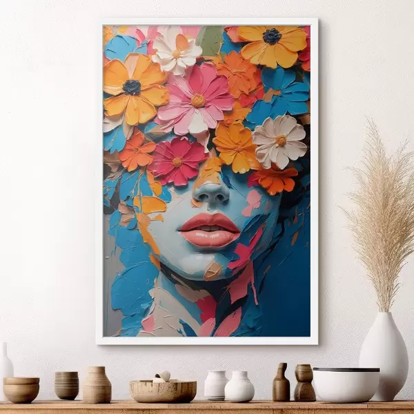 Poster Volto di ragazza in olio ricoperto di fiori Nr f41023