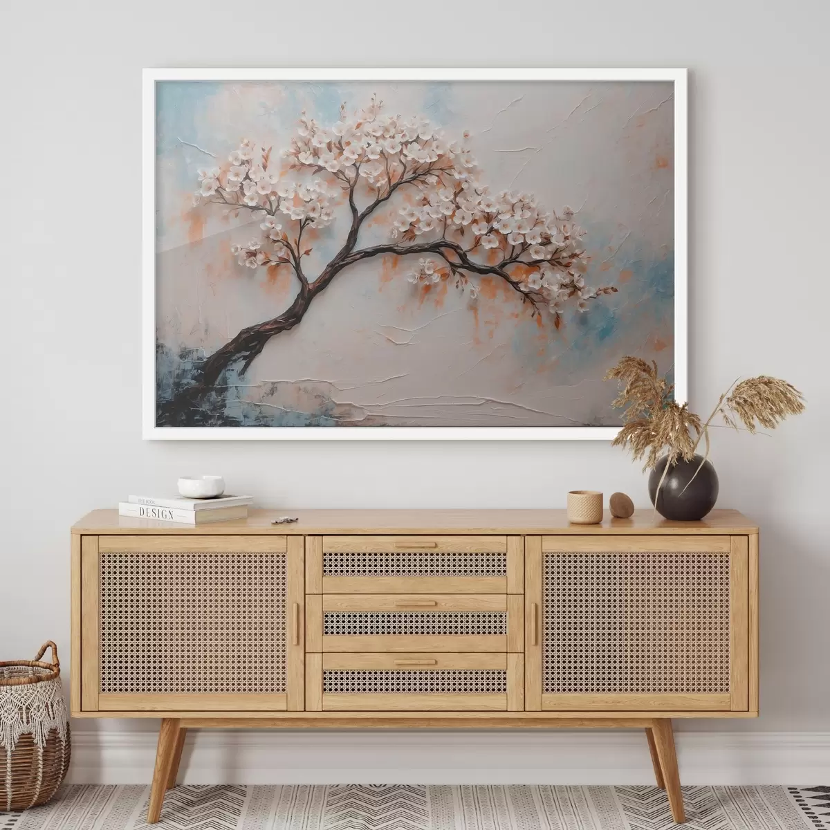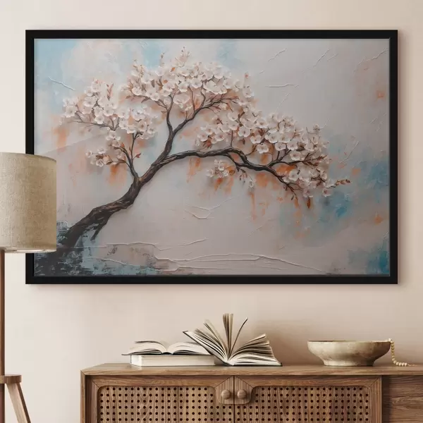 Poster Albero in fiore su sfondo astratto ad olio Nr f41032
