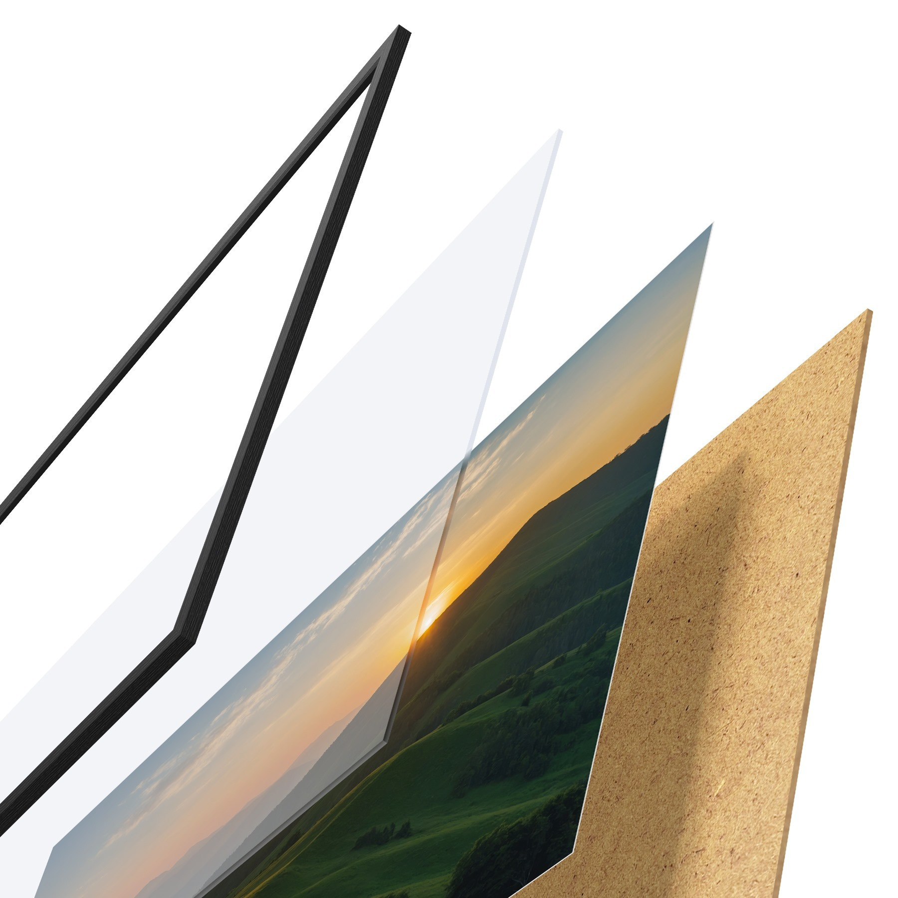 Il poster è composto da cornice, plexiglass, immagine stampata e supporto in truciolato. Il poster può essere immediatamente appeso alla parete grazie ai supporti sul retro.