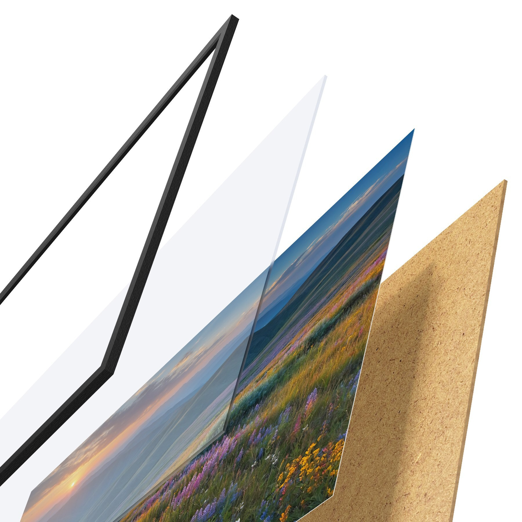 Il poster è composto da cornice, plexiglass, immagine stampata e supporto in truciolato. Il poster può essere immediatamente appeso alla parete grazie ai supporti sul retro.