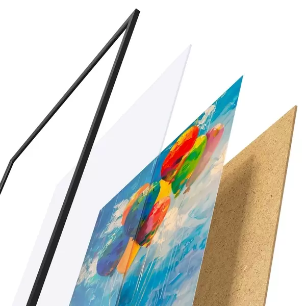 Il poster è composto da cornice, plexiglass, immagine stampata e supporto in truciolato. Il poster può essere immediatamente appeso alla parete grazie ai supporti sul retro.