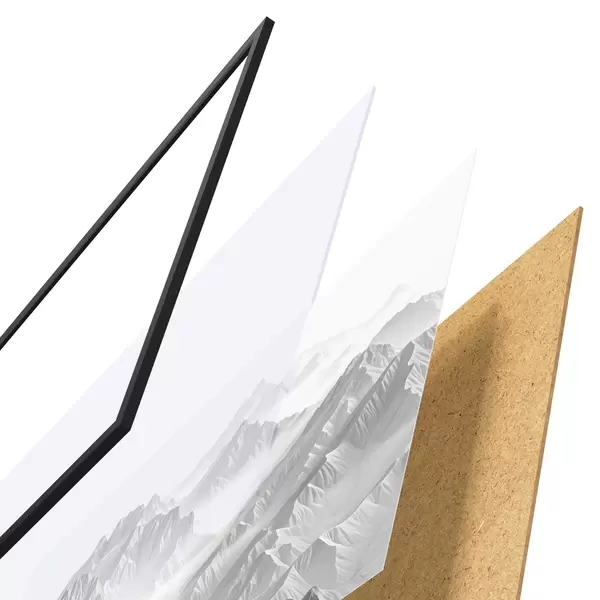 Il poster è composto da cornice, plexiglass, immagine stampata e supporto in truciolato. Il poster può essere immediatamente appeso alla parete grazie ai supporti sul retro.