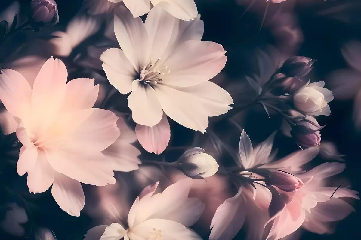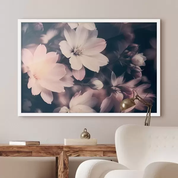 Poster Morbidi fiori rosa e bianchi vintage con sfondo sfocato Nr f41084