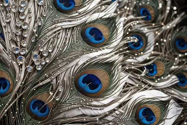 Poster Vibranti piume di pavone con motivi intricati e suggestivi disegni blu Nr f41103