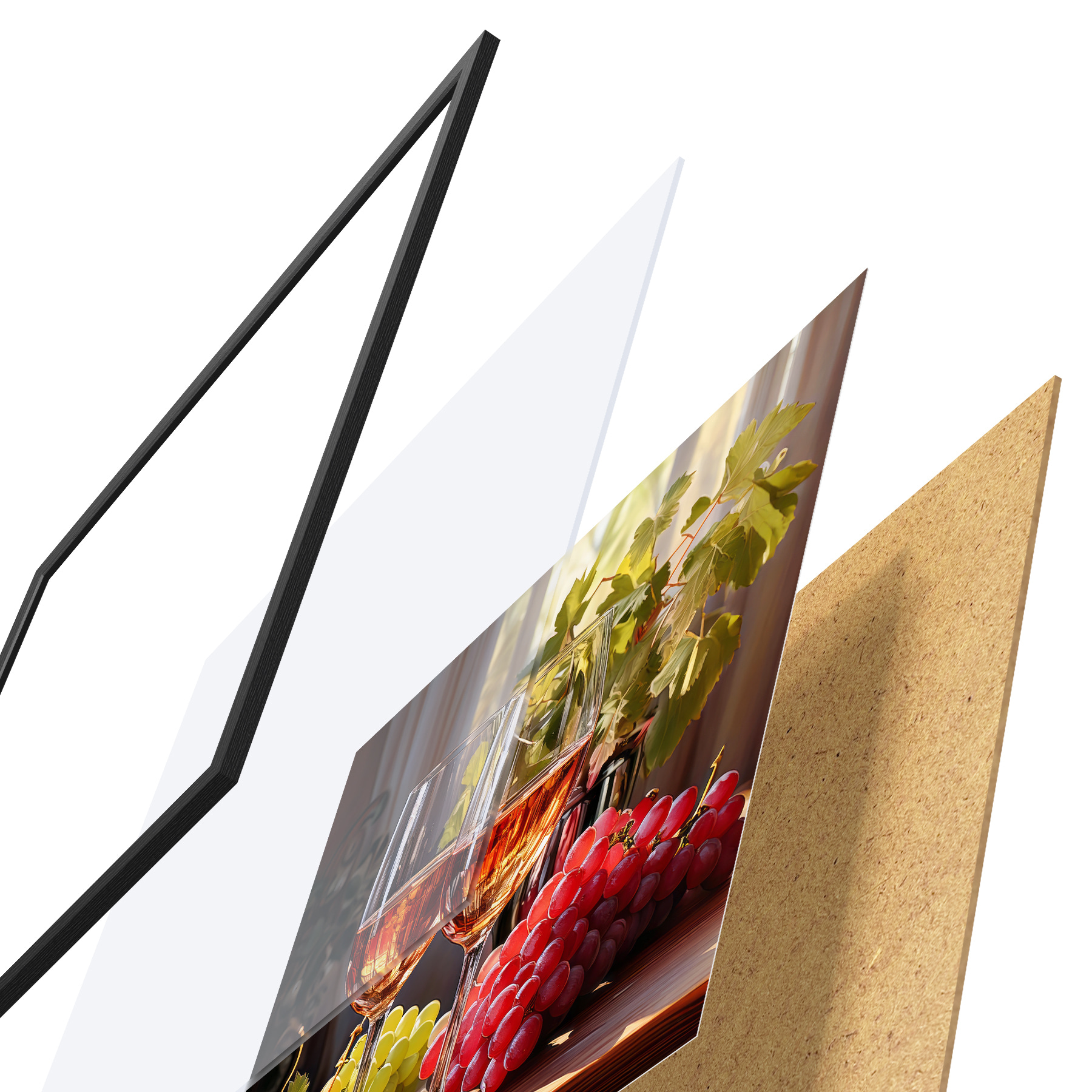 Il poster è composto da cornice, plexiglass, immagine stampata e supporto in truciolato. Il poster può essere immediatamente appeso alla parete grazie ai supporti sul retro.