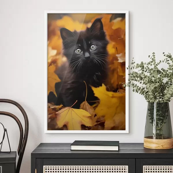 Poster Un simpatico gatto nero nella foresta autunnale Nr f41119