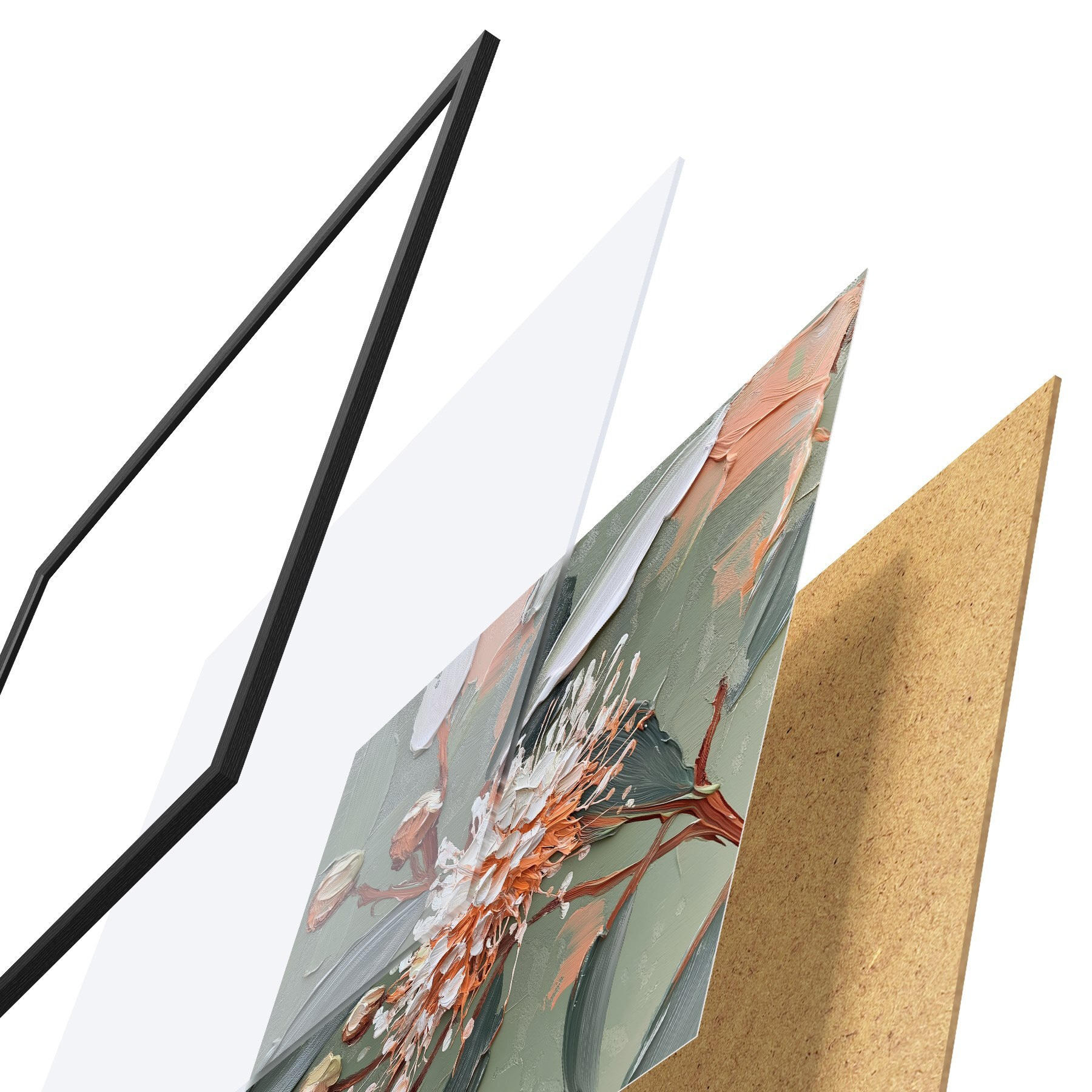 Il poster è composto da cornice, plexiglass, immagine stampata e supporto in truciolato. Il poster può essere immediatamente appeso alla parete grazie ai supporti sul retro.