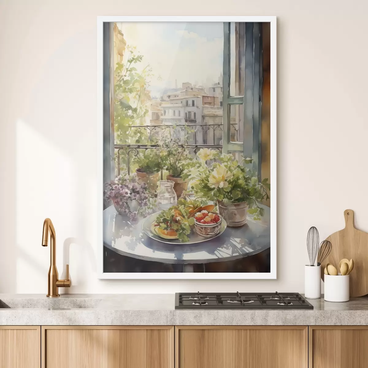 Poster Cena romantica con vista sulla città, acquerello, floreale Nr f41168