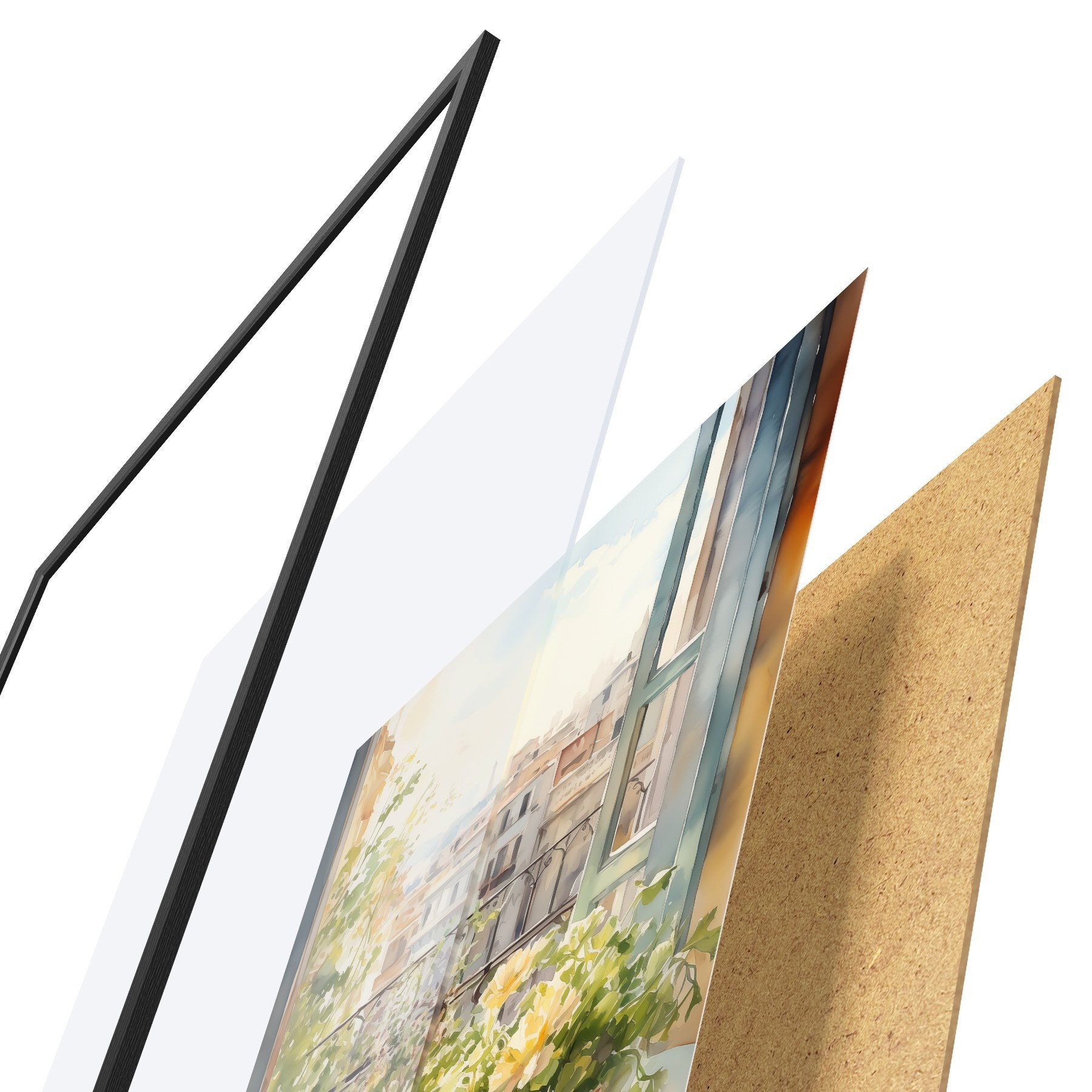 Il poster è composto da cornice, plexiglass, immagine stampata e supporto in truciolato. Il poster può essere immediatamente appeso alla parete grazie ai supporti sul retro.