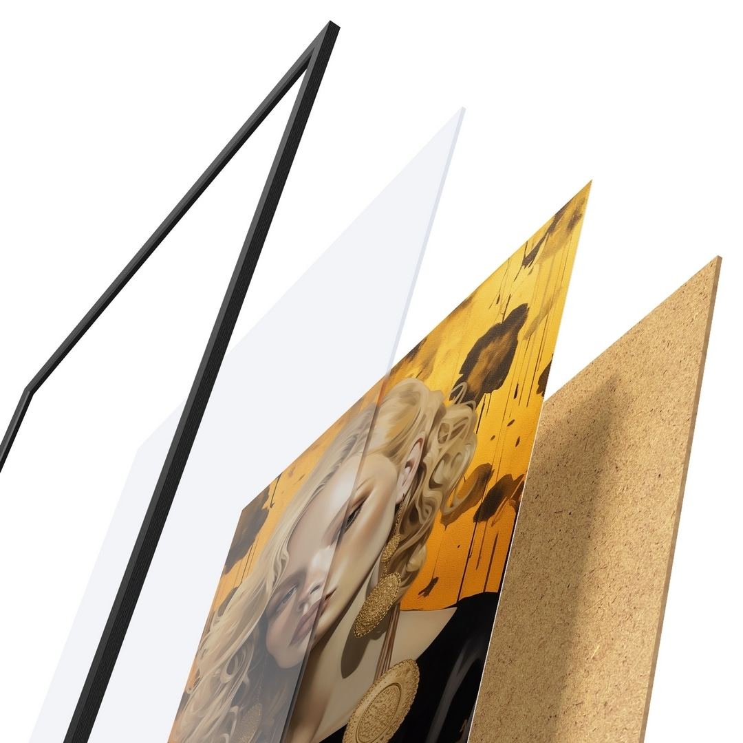 Il poster è composto da cornice, plexiglass, immagine stampata e supporto in truciolato. Il poster può essere immediatamente appeso alla parete grazie ai supporti sul retro.