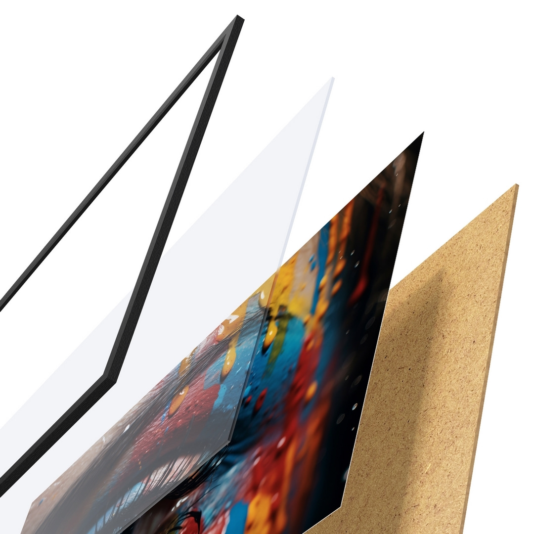 Il poster è composto da cornice, plexiglass, immagine stampata e supporto in truciolato. Il poster può essere immediatamente appeso alla parete grazie ai supporti sul retro.