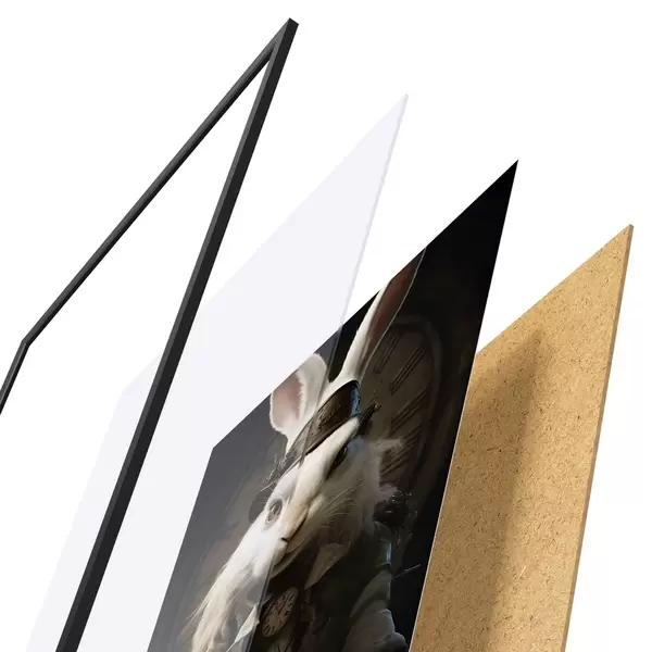 Il poster è composto da cornice, plexiglass, immagine stampata e supporto in truciolato. Il poster può essere immediatamente appeso alla parete grazie ai supporti sul retro.