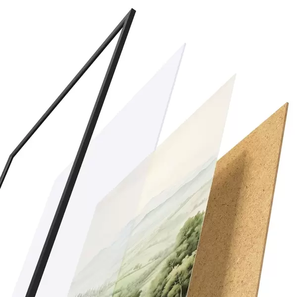 Il poster è composto da cornice, plexiglass, immagine stampata e supporto in truciolato. Il poster può essere immediatamente appeso alla parete grazie ai supporti sul retro.