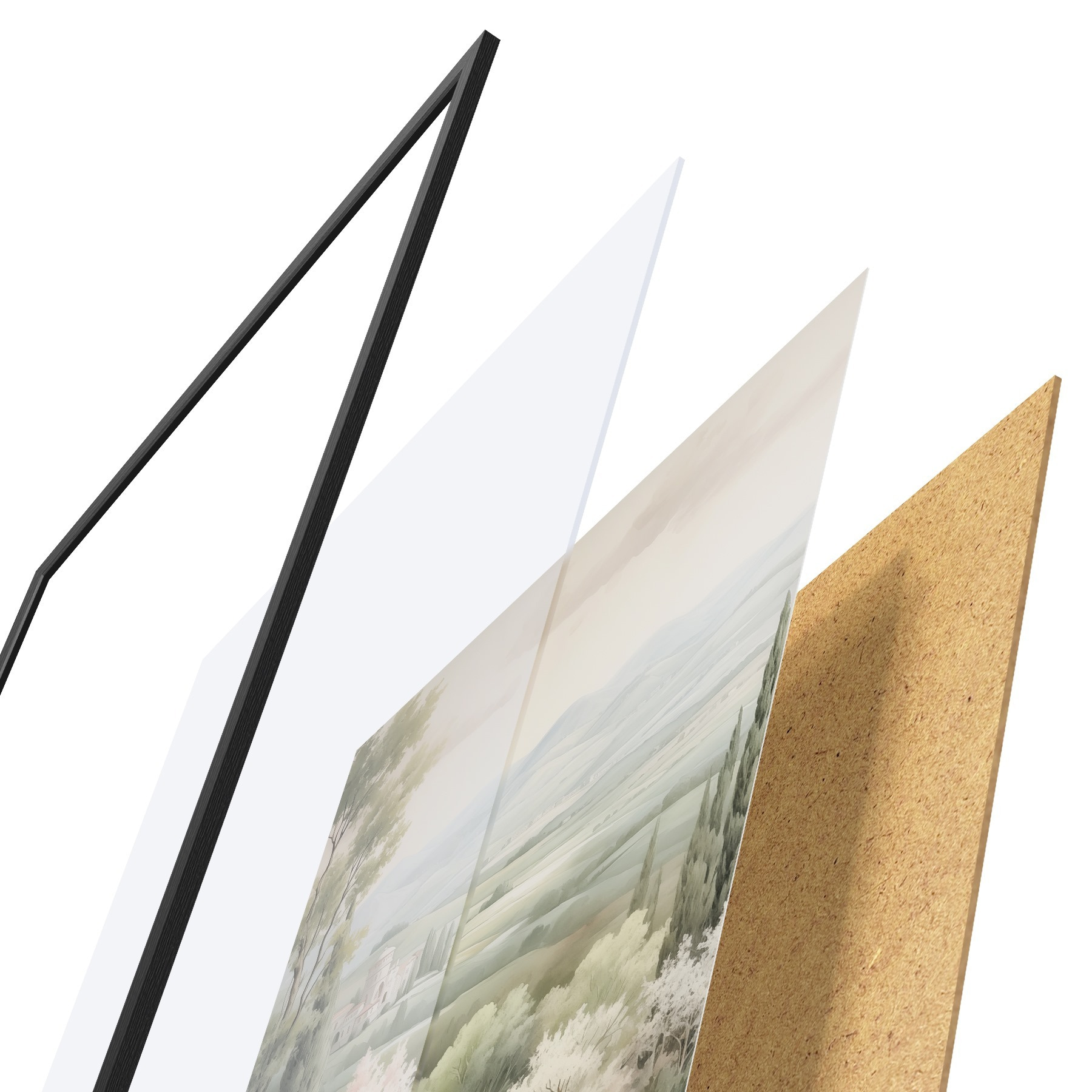Il poster è composto da cornice, plexiglass, immagine stampata e supporto in truciolato. Il poster può essere immediatamente appeso alla parete grazie ai supporti sul retro.