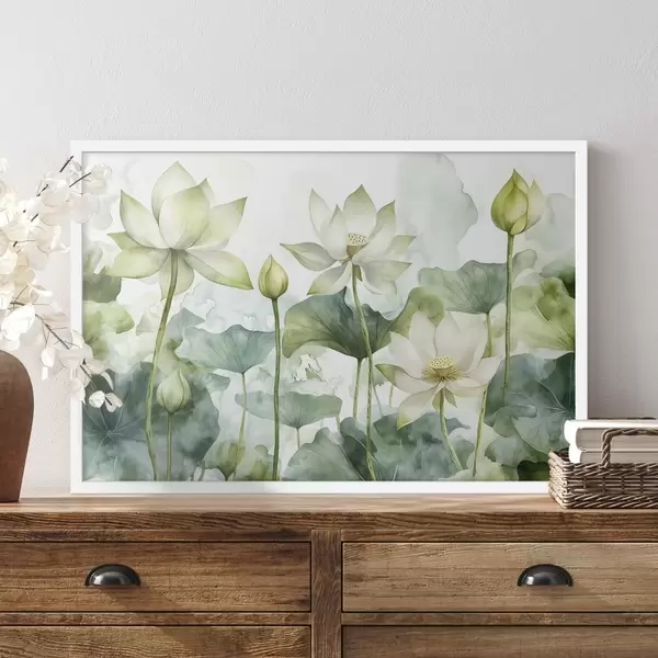 Poster Loti acquerellati, vegetazione lussureggiante Nr f41226