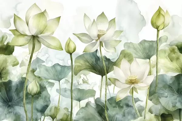 Poster Loti acquerellati, vegetazione lussureggiante Nr f41226